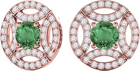 Gemstone Diamond Studs Earrings For Women 1.50 Carat 5MM Round Emerald With Natural Round White Diamond Studs Push Back Earrings For Ladies In 10K Solid Rose White Yellow Gold Best Jewelry Gift For Her By Aone Jewelry