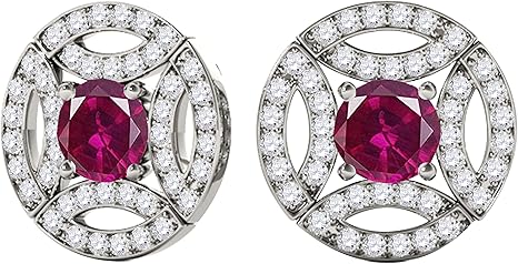 Gemstone Diamond Studs Earrings For Women 1.50 Carat 5MM Round Ruby With Natural Round White Diamond Studs Push Back Earrings For Ladies In 10K Solid Rose White Yellow Gold Best Jewelry Gift For Her By Aone Jewelry